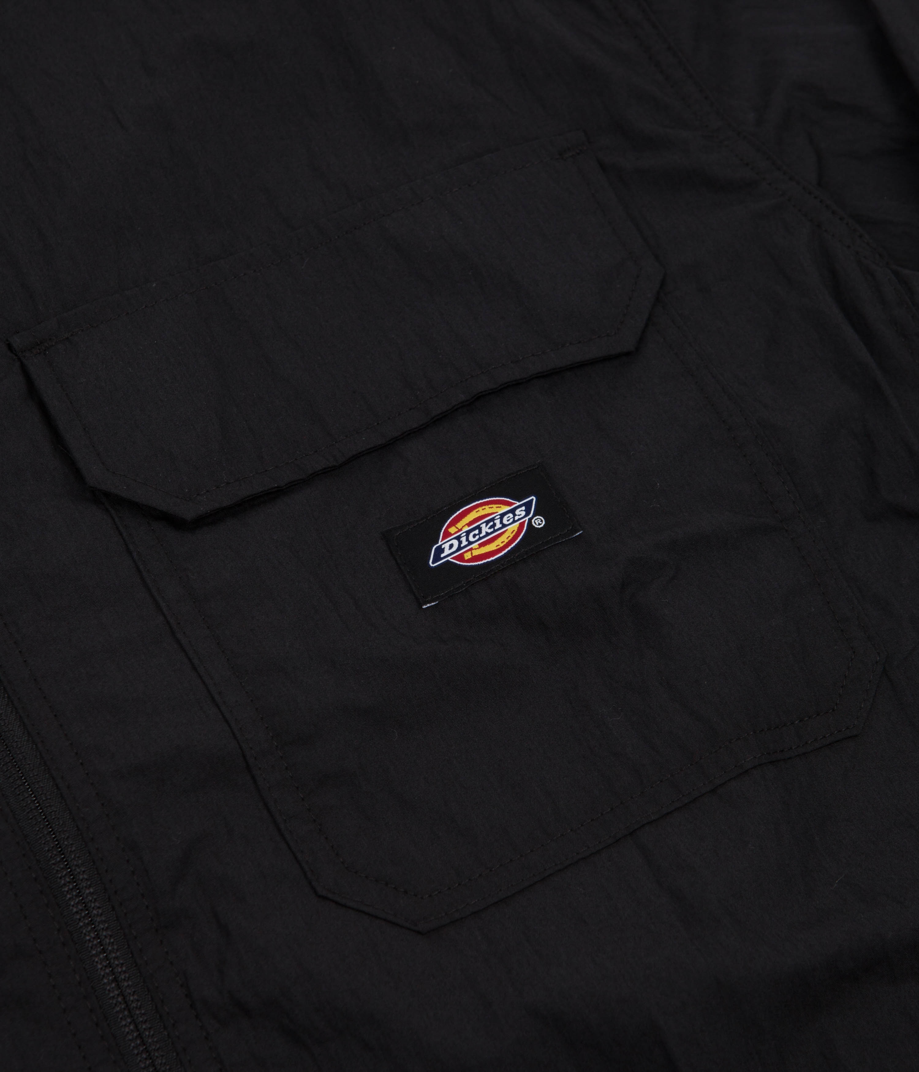 Dickies Glacier View Overshirt in Black. Crafted from 100% cotton and tailored to a relaxed fitting, this workwear inspired Dickies overshirt is a long sleeve layer designed to provide ample protective and insulative coverage from first wear. Styled with a full length YKK zipper fastening, button adjustable cuffs and a reinforced straight cut hemline, this utility style overshirt also features tonal stitched seams and a traditional collar for additional characterised depth. Two side entry pockets supply ample stash space to suit, whilst the practical left chest fold-over pocket is signed off with an embroidered ‘Dickies’ flag label for additional textured detail.